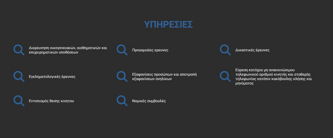 - Διερευνηση οικογενειακών, αισθηματικών και επιχειρηματικών υποθέσεων
