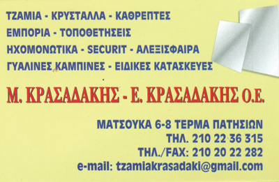 Το κατάστημα μας βρίσκεται στα Άνω Πατήσια από το 1970. Ασχολούμαστε με Τζάμια, Κρύσταλλα και Καθρέπτες,