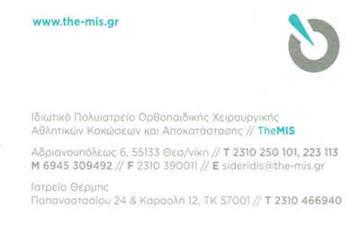 Ιστοσελίδες: www.the-mis.gr, www.sportsclinic.gr, www.sideridis.com.gr, www.sportsmedicine.gr